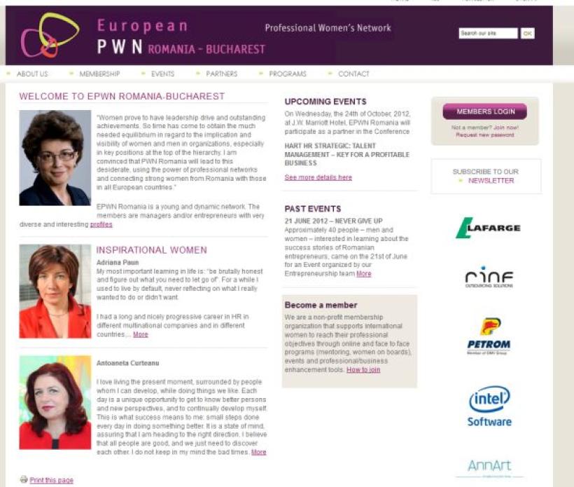 Evenimentul aniversar EPWNRo a fost sărbătorit printr-o întâlnire desfășurată în decorul rafinat al Palatului Cesianu Racoviță. Seara a marcat și lansarea site-ului asociației, www.europeanpwn.net, prezentat de Carmen David, VP International Networks Cooperation și Adriana Record, membră a asociației. Site-ul reprezintă și el un element de diferențiere. Prin apartenența la platforma online a EPWN, permite comunicarea directă și participarea comună, online, la evenimente, a membrelor din România și partenerelor din asociațiile surori, accesul la informații si alte resurse online internaționale valoroase, networking global rapid, la un click distanță. Site-ul include și profilul membrelor asociației, evenimentele trecute, evenimente curente și viitoare din România, programele aflate în derulare în organizație și la companii sponsor, cum ar fi programul de mentorat desfășurat pentru echipa de management a companiei RINF, coordonat de Sandra Pralong VP Mentoring , împreuna cu Dana Marca, membră EPWN, sau discuțiile de prânz organizate pentru INTEL sub coordonarea Adinei Bigas, VP Strategic Partnerships.