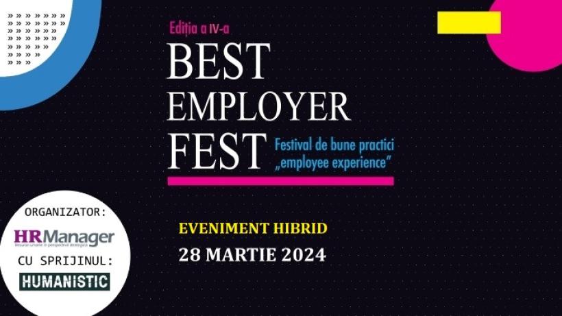 Cea de a patra ediție BEST EMPLOYER FEST, cu titlul „Individualizarea în experiența angajatului. Cât este de realistă?”, este dedicată managerilor de Resurse Umane. Participarea este pe bază de înscriere prin completarea formularului (disponibil aici) pus la dispoziție pe pagina evenimentului.