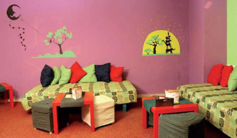 Cafeneaua se intinde pe o suprafata relativ mica si este structurata pe trei niveluri. In prima incapere stau asezate in vitrine tot felul de accesorii pentru tutun. Insa cel mai interesant loc al cafenelei este, cu siguranta, cel de la subsol. Intr-o incapere de peste cinci metri patrati sunt asezate la distanta de aproape un metru cate trei paturi asemanatoare cu cele din camera bunicii, acoperite de multe pernute. Fiecare pat are in dreptul lui cate o masuta pe care iti poti aseza, de exemplu, un coctail. Peretii sunt acoperiti de desene cu specific urban. Sunt vii si vesele, si-ti dau o senzatie atat de confortabila, incat parca te-ai afla in propria-ti camera. Nu exista scaune, decat pe terasa, vara. Pe langa paturi, un alt tip de mobilier confortabil intalnit in cafenea este canapeaua. Desenele de pe pereti sunt rezultatul celor mai nebunesti idei iesite din mintile "urbanistilor". Daca e sa ne referim la preturi, acestea sunt sub media pietei, pentru ca, momentan, spune antreprenorul, nu a gasit o justificare sa le mareasca.