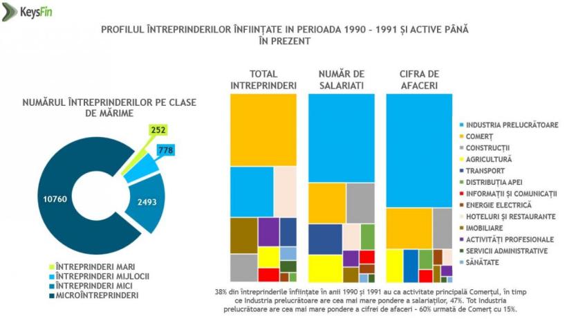 Analiza datelor statistice arată că, majoritatea firmelor care au rezistat celor 26 de ani economiei de piaţă, au fost microîntreprinderi (10760), urmate de societăţile mici (2493), întreprinderile mijlocii (778) şi numai 252 de firme mari.