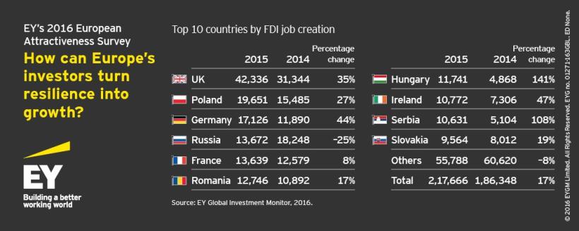Cu toate acestea, în pofida unui an 2015 pozitiv pentru investiţiile ISD în Europa, provocările de natură geopolitică și macroeconomică atașate Brexit-ului au potențialul de a afecta intențiile de investiții în viitorul apropiat.