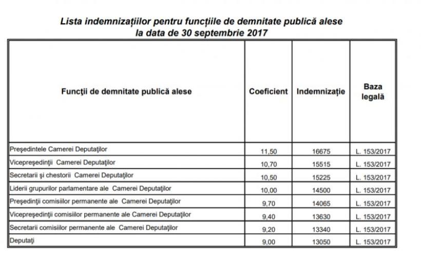 Camera Deputaţilor a publicat şi lista funcţiilor din Serviciile Camerei Deputaţilor la data de 30 septembrie 2017, menţionând atât salariul de bază minim, cât şi salariul de bază maxim.