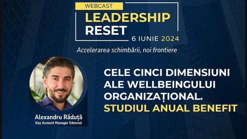 Wellbeing-ul sau bunăstarea reprezintă starea de a fi sănătos, fericit și prosper. La locul de muncă, aceasta se manifestă prin bucuria pe care o simte o persoană pentru munca sa, combinată cu sentimentul că face un lucru semnificativ și valoros. O cultură organizațională care susține wellbeing-ul angajaților este esențială pentru a menține productivitatea și satisfacția la locul de muncă. Alexandru Răduță, Account Manager Edenred a vorbit, în cadrul evenimentului Leadership Reset, organizat de Revista CARIERE și MMM Consulting, despre dinamica celor 5 dimensiuni ale wellbeingului organizațional – fizic, emoțional, financiar, profesional și spiritual, și felul în care companiile pot sa să răspundă la nevoile în continuă evoluție ale angajaților, pentru a crește nivelul lor general de bunăstare, pe toate cele cinci dimensiuni, atât la birou, cât și în timpul liber. Iată câteva concluzii:
