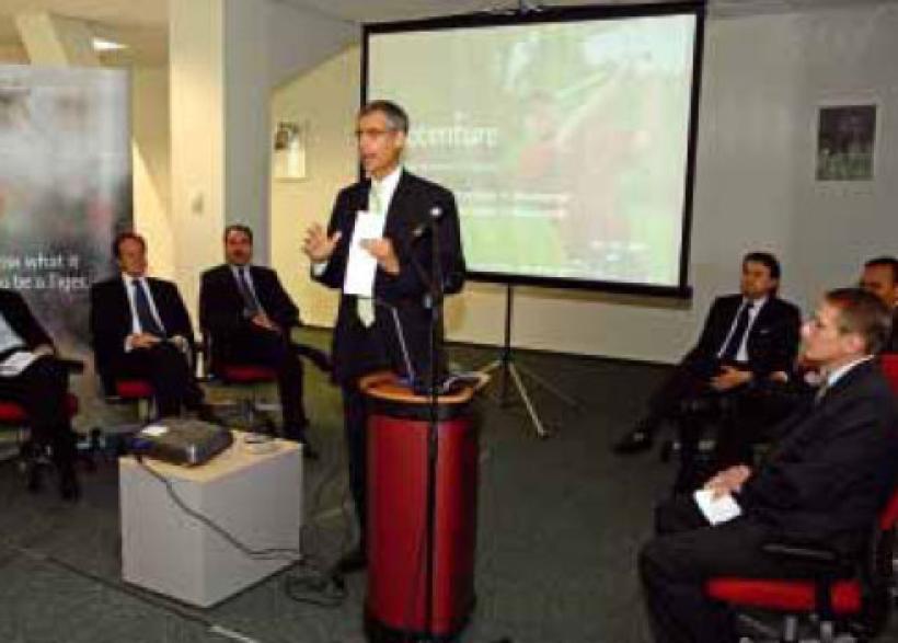 Solutiile oferite de Accenture se adreseaza tuturor companiilor care activeaza in domenii precum: Telecom, Financiar, Sectorul public, Products (bunuri de larg consum) Resources (resurse naturale). Centrul Accenture din capitala are in prezent 200 de angajati si, potrivit estimarilor companiei, numarul acestora va ajunge la 1.000 in viitorul apropiat. La nivel global, Accenture are aproximativ 146.000 de angajati, este prezenta in 49 de tari, iar la sfarsitul anului fiscal incheiat a inregistrat venituri nete de 16.65 miliarde de dolari.