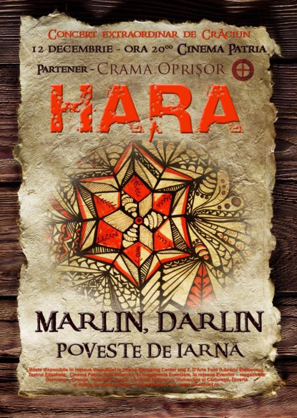 Hara promite un spectacol unic, o poveste creată de muzica live, efectele dramatice şi efectele vizuale care te poartă, prin trăiri intense, de la soba bunicii la zarva oraşului. Trupa va cânta LIVE, într-o interpretare originală, câteva colinde tradiţionale din colecţia proprie, (Marlin Darlin, Măiruţ Mărgaritar, Ziurel) şi va dărui publicului piesele consacrate: Cine, Dor de tine, Nu-mi pasă, Nostalgie (Vara mea), Aiurea, Shikana, Totaya ye, Muro shavo şi altele. Mirosul de brad şi gustul unui vin bun, de la Crama Oprişor (partenerii noştri, care ne susţin în concert), vor întregi atmosfera sărbătorilor de iarnă. Iar single-ul de sezon Vine Moşu’ va încununa povestea spusă prin cântec şi cântare.