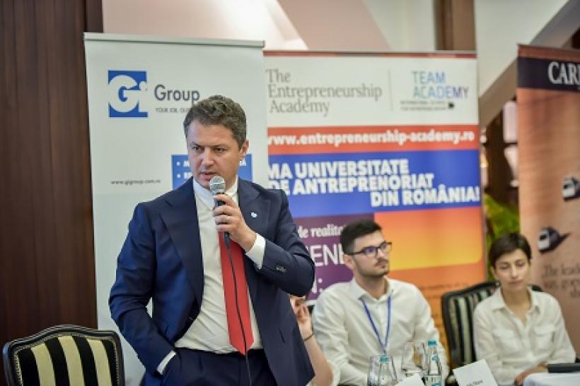 Cătălin Micu - Managing Associate, Zamfirescu Racoți & Partners – a moderat a patra sesiune de discuții, care a fost susținută de un panel format din: Virginia Oțel (Președintă PWN Romania), Oana Marinescu (Managing director OMA Vision), Ștefan Dărăbuș (Director regional, Europa Centrală și de Sud pentru Hope and Homes for Children), Nadia Tătaru (co-fondator Itsy Bitsy FM şi MBA Junior), Felix Pătrășcanu (membru fondator & Managing Partner Fan Courier), Eduard Burghelia (Fondator start-up financiar Confidas și student EA – The Entrepreneurship Academy).