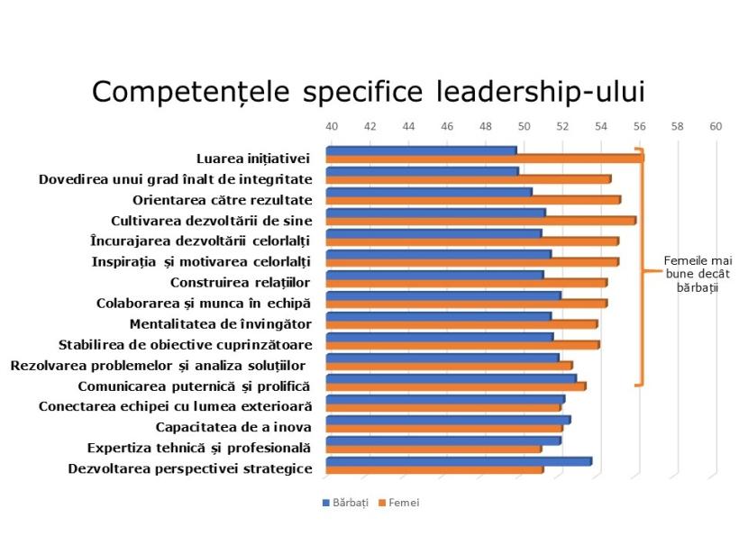 În calitate de lider, nu este nevoie să te întrebi dacă relaționezi cu angajații, întrebarea ce se impune se referă la calitatea acestor relații. Și, în general vorbind, femeile sunt mai bune decât bărbații în gestionarea relațiilor. Bărbații sunt mai buni în ceea ce privește conținutul unui subiect. Este, de asemenea, un aspect foarte important, dar care contează mai puțin în leadership în ziua de astăzi. Și, totodată, cercetările dovedesc acest lucru. Compania Zenger Folkman a concluzionat în 2014 că femeile au obținut un scor mai mare în leadership pentru 12 din totalul de 16 competențe (vezi grafic 1).