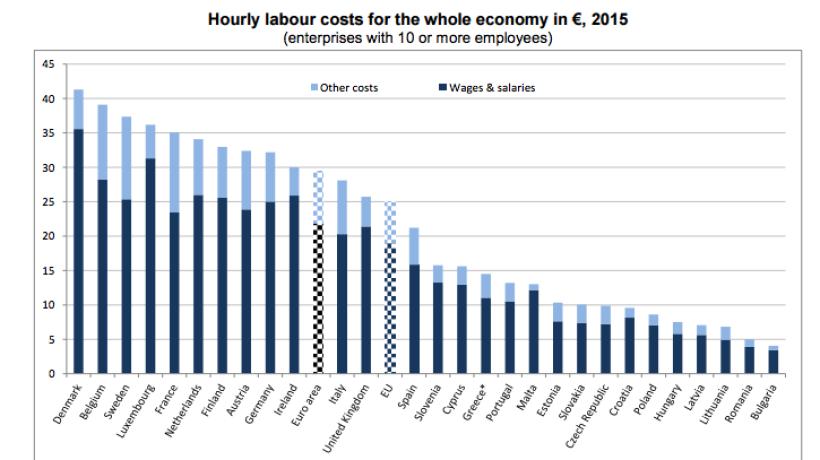 În UE ponderea costurilor non-salariale a fost de 24% și în zona euro de 26%, în rândul statelor membre cea mai mică pondere a costurilor non-salariale fiind înregistrată în Malta 6,6% și cea mai mare în Franța (33,2%). In România ponderea costurilor non-salariale a fost de 22%.