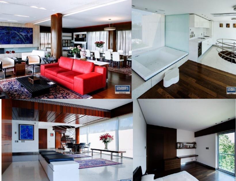 Este vorba despre un penthouse din zona Primăverii, structurat pe două nivele și compartimentat în șapte camere (plus dependințe).