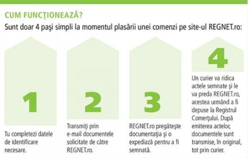 Astfel, în cazul modificării de statut al unei companii, asociații nu trebuie decât să semneze documentația comunicată de către echipa REGNET.ro, iar în ceea ce privește înființarea unei firme, asociatul/asociații nu trebuie decât să depună capitalul social la o bancă și să acorde declarațiile notariale necesare.