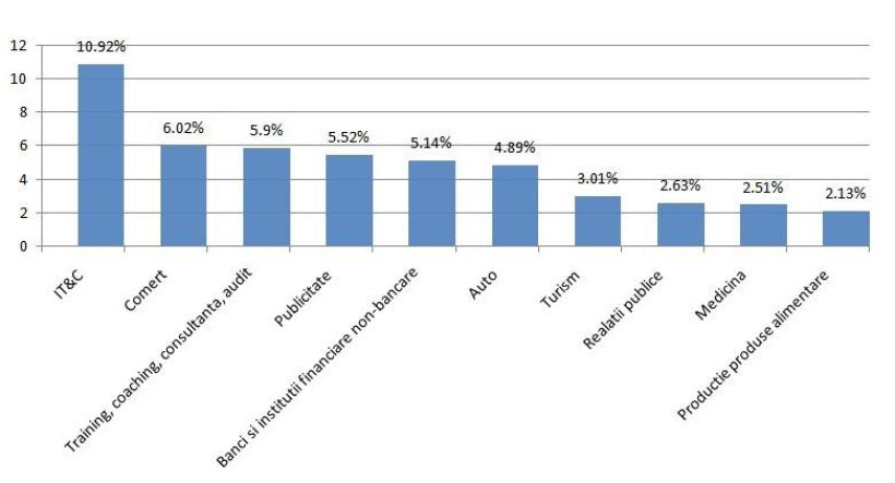 Îndustria de IT se află într-o continuă dezvoltare în regiune, tendinţă reliefată şi de numărul important de participanţi provenind din această arie de activitate. Aceasta a ocupat locul întâi în topul celor mai prezente domenii la Iaşi Business Days, cu un procent de 10,92%. Comerţul a fost şi el bine reprezentat, tocmai de aceea este ocupantul locului doi, cu 6,02%. Topul este urmat de training, coaching, consultanţă şi audit cu un procent de 5,9%; publicitate cu 5,52%; bănci şi instituţii financiare non-bancare cu 5,14%; auto cu 4,89%; turism cu 3,01%; relaţii publice cu 2,63%; medicina cu 2,51%; producţie produse alimentare cu 2,13%.