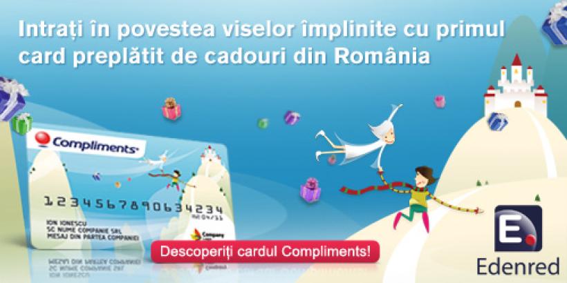 Noul produs Edenred se numeste Compliments® si este un card de cadouri, preplatit, care poate fi oferit de companii atat propriilor angajati, ca element de recompensare sau drept cadou, cat si partenerilor de afaceri sau clientilor, ca instrument in programele de marketing si protocol.