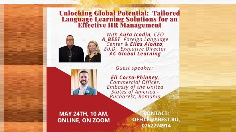 The webinar will also have as a guest speaker Eli Corso-Phinney, Commercial Officer, Embassy of the United States of America - Bucharest, Romania, who will emphasize the support of the US Commercial Service in developing AC Language School’s business in Romania, together with A_BEST Foreign Language School, their local partner.