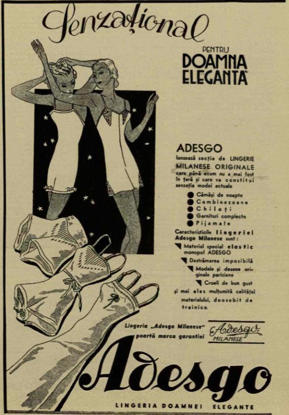 Dacă este să răsfoim Ilustraţiunea Română din anii interbelici descoperim o reclamă la ciorapi cu un nume care era mai mult decît cunoscut: Adesgo. O fabrică de ciorapi care a fost multă vreme un simbol pentru Bucureşti. De la înfiinţare, 1926, fabrica a traversat mai multe perioade tulburi, începînd cu includerea sa ca datorie de război către Rusia!16 maşini Cotton vechi, de fineţea 42 şi 45 gg pentru producerea ciorapilor din bumbac şi mătase pentru femei își începeau activitatea în anul 1926, la Fabrica de Ciorapi Adesgo, iar 180 de angajaţi munceau în ateliere. Denumirea fabricii s-a păstrat de la înfiinţare până astăzi.
