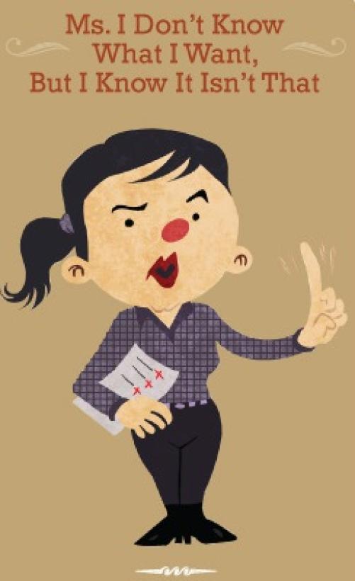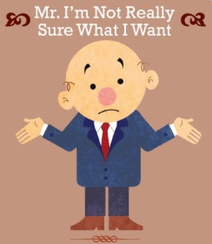 Acest client nu știe ce vrea, dar cu siguranță știe ce nu vrea - și este, probabil, tot ceea ce propune.