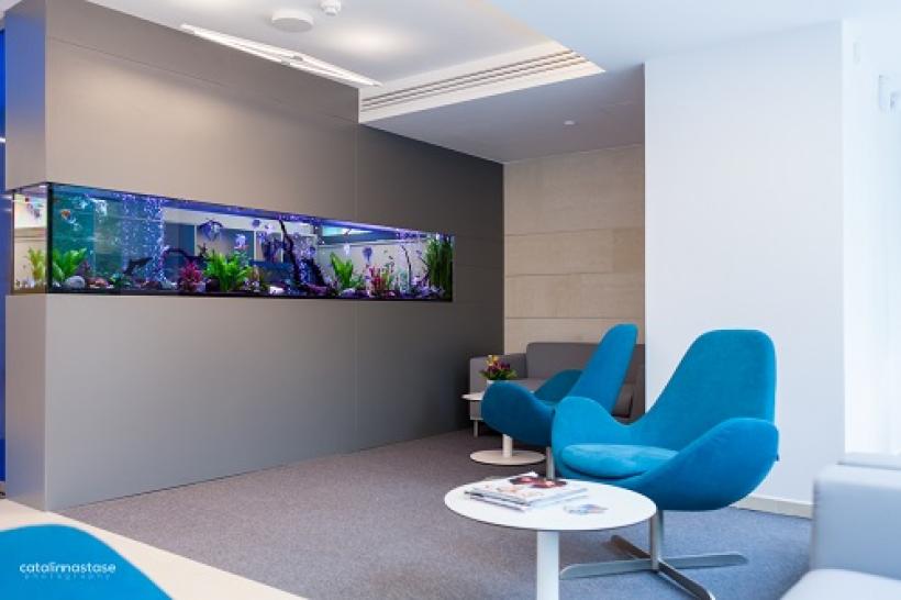 Fiind un sediu construit de la zero,clinica dispune de facilități moderne, pe lângă curte interioară, sală proprie de training/cursuri, subsolul clădirii este dominat de o parcare subterană dedicată pacienților cu acces facil către recepția clădirii care a fost personalizat cu folii colorate. Tot la acest nivel întreaga echipă medicală beneficiază de un vestiar spațios creat de forFITOUT în care își pot depozita lucrurile personale.