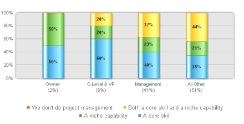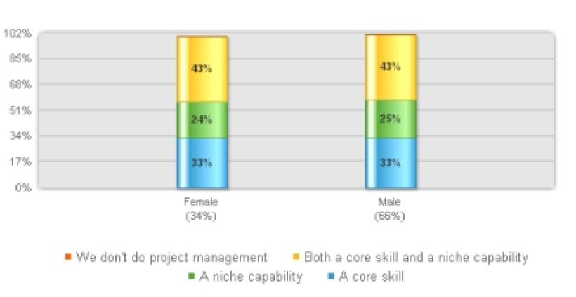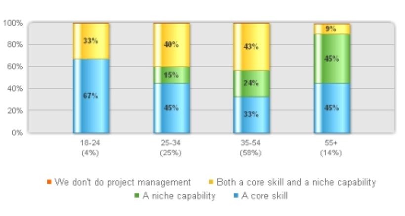 So we have looked at gender but what about age? Well the majority of respondents were in the 25 to 54 age range (logical really) and the younger the viewpoint the more likely it was that there was a belief that it was a “core skill” or the non-belief that it was a “niche capability”. Was this as a result of the skills being gathered through the education process for business these days; that is project management being taught as one of the range of business skills?