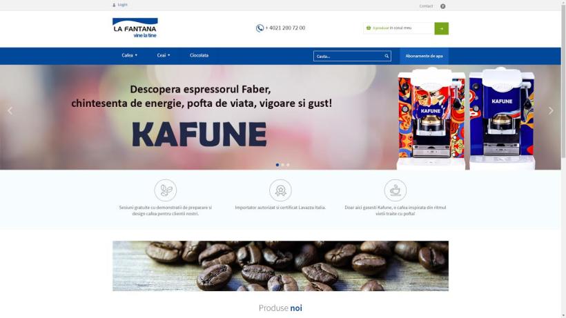 Magazinul pune la dispoziția clienților întreaga ofertă actuală de cafea și produse complementare: gama de sortimente de cafea KAFUNE – brandul principal de cafea al companiei, precum și gama de cafea Lavazza, pentru care La Fântâna este distribuitor autorizat.