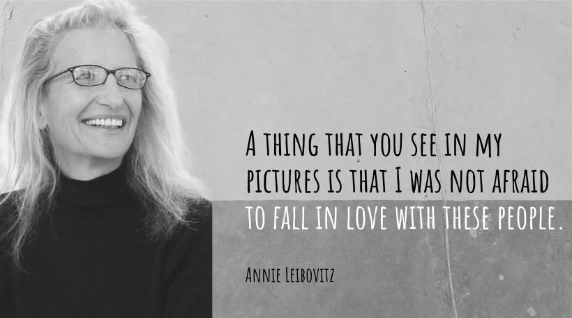 Annie Leibovitz este o mare fotografă de portrete. În palmaresul ei să numără „Rolling Stones”, „Vogue”, „Vanity Fair”. Pe mulți dintre oamenii faimoși pe care îi cunoaștem astăzi îi știm prin fotografiile făcute de ea. Annie Leibovitz este autoarea ultimei fotografii a lui John Lennon – faimoasa lui fotografie cu Yoko Ono – pe care a făcut-o în chiar ziua morții sale.