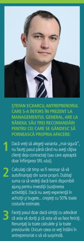 Ştefan Ecxarcu, antreprenorul care s-a întors în prezent la managementul general, are la rândul său trei recomandări pentru cei care se gândesc să pornească propria afacere: