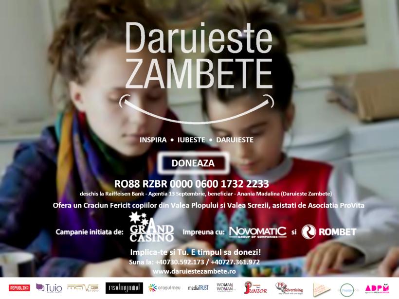 Prin intermediul campaniei Dăruiește zâmbete, Grand Casino și partenerii săi doresc să îmbunătăţească condiţiile de viaţă ale copiilor defavorizați aflați în grija Asociației ProVita, prin mobilizarea comunităţii de gambling și a tuturor celor care pot să îi ajute pe semenii lor aflaţi în dificultate.