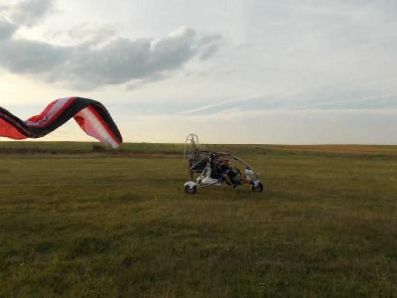 „În cariera mea militară a trebuit să fac salturi cu paraşuta. Atunci, pasiunea s-a aprins şi mai tare”, mai spune el. De 11 ani, zboară cu paramotorul şi a învăţat cum să îi pregătească şi pe alţii în acest sport extrem.