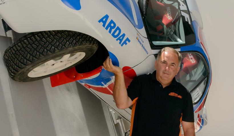 Mașina care i-a adus lui Titi Aur patru titluri de campion îi întâmpină pe vizitatorii Centrului de Cercetare chiar de pe peretele din stânga al sălii de primire, de la înălțime și pe verticală. O piesă spectaculoasă și frumoasă, mașina de suflet a campionului național la raliu.
