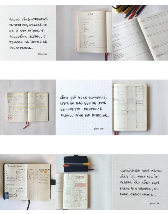 Plan Clar a început în pandemie, când Erika Popliceanu s‑a trezit că trebuie „să‑și facă loc” în propria viață. Avea un background interdisciplinar în sociologie, urbanism și comunicare, care o pregătiseră pentru un rol de ghid în planificare. Însă era și mamă, și studentă, își termina și disertația la artă textilă, iar copiii ei, unul în clasa pregătitoare, celălalt, în clasa a V‑a, făceau școală online. Așa că a făcut ce face oricând apare ceva copleșitor – a luat un pix și o foaie și a început să creeze structuri de management de timp, prioritizare, diagrame. O vreme, a desenat unele dintre cele mai frumoase pagini de planner pe care le‑a văzut Instagramul românesc.