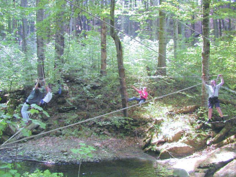 Asa i-am cunoscut pe cei de la Professional Adventure. Era luna mai si in Bucuresti te topeai deja de caldura. Ne-au preluat din Sinaia si am urcat impreuna, cu telecabina, in platoul Bucegilor. Aerul devenise cu adevarat respirabil. Apoi am coborat pana la cascada Vanturis. Nici nu-mi imaginam ca atat de aproape de partia de schi poti gasi un loc atat de salbatic. Ni se propune sa coboram cascada cu ajutorul franghiilor. Apa e rece ca gheata. "Nu-i nimic - avem echipament special", ne asigura baietii. "Dar trebuie sa-l puneti direct pe piele". Ne ascundem prin tufe ca sa imbracam niste costume asemanatoare cu cele de scafandru. Si, cand ma intorc, pentru prima data dupa multe luni, ma pufneste rasul. Suntem cu totii (opt oameni, dintre care patru fete) foarte caraghiosi. Cel mai amuzant e sefu', pentru ca are burta. Are burta, dar n-are complexe.