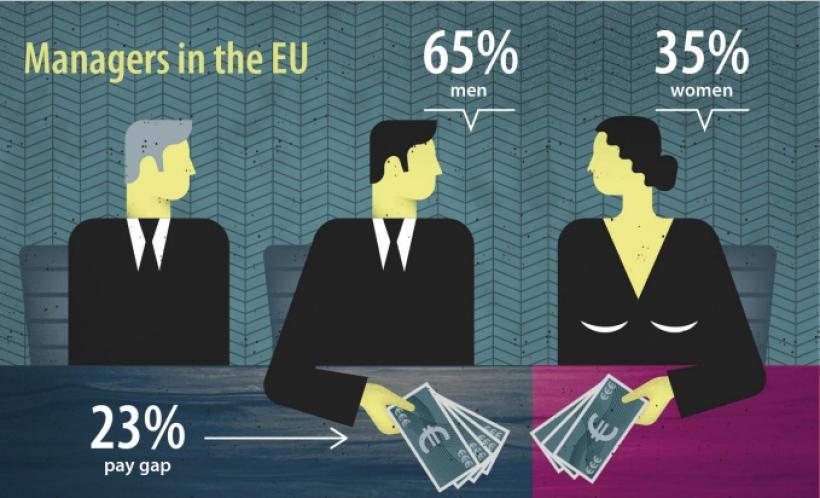 În plus, femeile aflate în funcții de conducere în UE câștigă în medie cu 23,4% mai puțin decât bărbații directori.