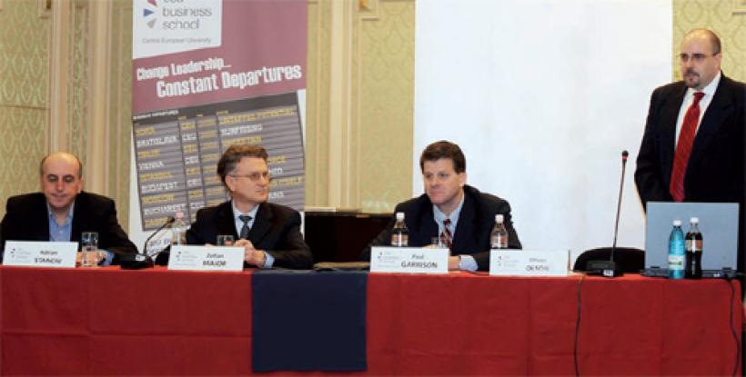 Adrian Stanciu, fondatorul Human Synergistics, care tine un curs despre conducerea schimbarii la CEU Business School, a prezentat in cadrul conferintei, cateva statistici legate de subiect. Conform acestora 80% dintre schimbari se produc sub un management nou si in perioada de criza, dar se pare ca 70% dintre acestea esueaza. "Conducerea schimbarii incepe cu schimbarea conducerii. Si asta nu inseamna neaparat inlocuire; poate insemna si o profunda reflectie asupra rolului pe care fiecare dintre noi il avem in crearea organizatiilor noastre si a responsabilitatilor care ne revin", a spus Adrian Stanciu.