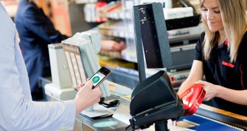 - Scaneazi codul QR afișat la casa de marcat sau pe site-ul de cumpărături online