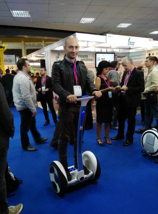 Printre standurile târgului se tot plimbau Segway-uri care ne-au atras atenția. „Vinovat” pentru „defilarea” lor în cadrul IMWorld 2015 este Dan Rotaru, Managing Partner al Ninebot: „Nu sunt segway-uri. Sunt „personal robots”, adică varianta mai sofisticată a segway-urilor clasice. De fapt, ca să vă spun un „secret”, Ninebot a cumpărat Segway anul acesta (râde).”