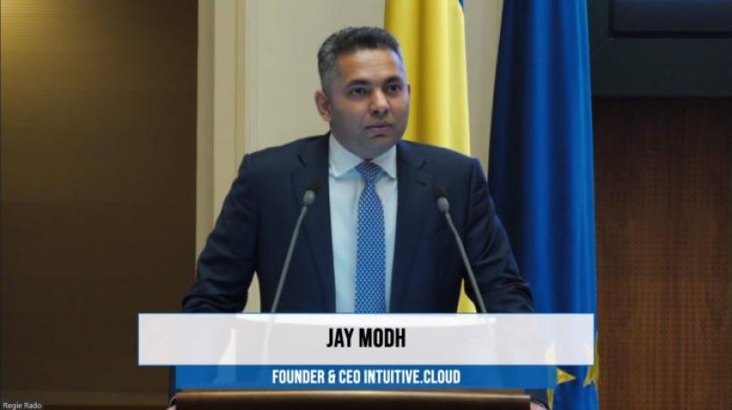 Primul speaker al conferinței a fost Jay Modh, Fondator și CEO al Intuitive.Cloud. Acesta a prezentat un subiect de interes pentru toate companiile care investesc în AI: "Maximizing ROI in Generative AI: Cost Optimization Strategies for CIOs". Modh a evidențiat strategii de optimizare a costurilor în cadrul proiectelor de AI generativă, explicând cum CIO-ii pot alege soluțiile tehnologice potrivite pentru nevoile lor și cum pot gestiona eficient costurile continue, cum ar fi cele pentru resursele de date și calcul. Prezentarea sa a oferit perspective valoroase pentru optimizarea performanței în proiectele AI.