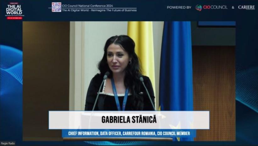 Gabriela Stănică, Chief Information & Data Officer la Carrefour România și membră CIO Council, a încheiat sesiunea cu o prezentare despre "AI Powered Innovation in Retail". Stănică a discutat despre modul în care Carrefour valorifică AI pentru a transforma experiența clienților și pentru a inova continuu în sectorul retail.