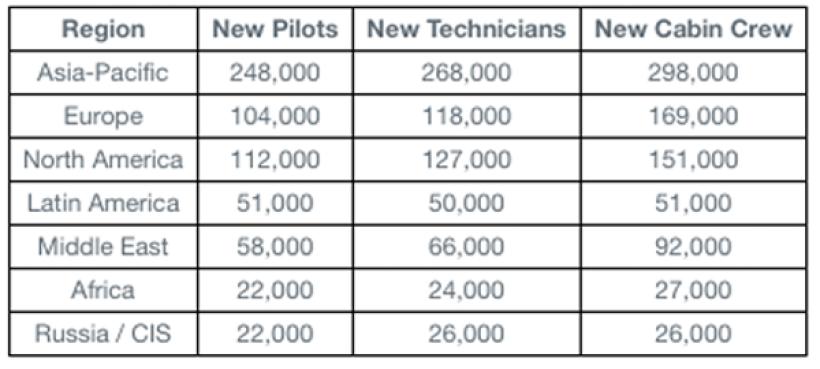 Spre deosebire de o analiză similară efectuată anul trecut, în 2016 așteptările au crescut cu 10.5% pentru piloți și 11.3% pentru tehnicieni. Astfel, până în 2035, va fi nevoie de: