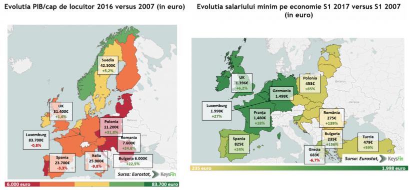 Un indicator relevant îl reprezintă evoluţia produsului brut pe cap de locuitor. Dacă în Polonia, acesta a crescut între 2007 şi 2016 cu peste o treime, până la 11.200 euro/locuitor, în România, după o creștere similară de aproape 25%, a patra ca dinamică după Polonia, Malta și Irlanda, am ajuns abia la 7.600 de euro în ultimii 10 ani.