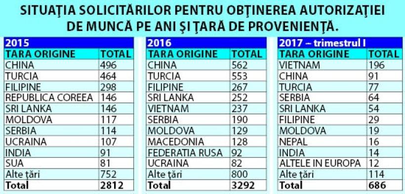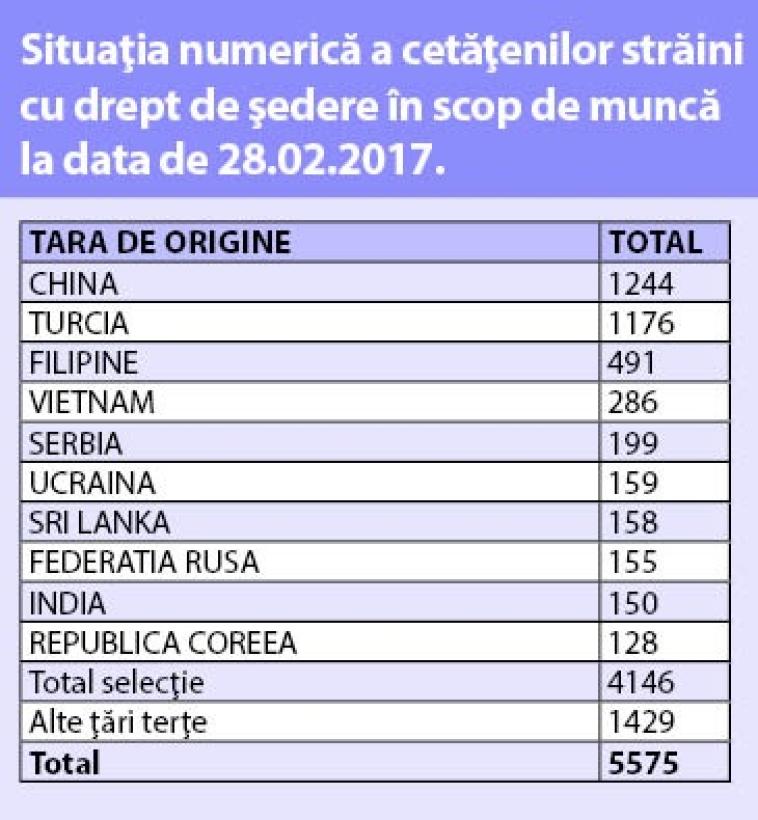 Cei mai mulți sunt chinezi (1244) și turci (1176) urmați de filipinezi (491) și vietnamezi (286). Filipinezii sunt „preferați” pentru că sunt vorbitori de limbă engleză, dar oare sunt și mai „ieftini”?
