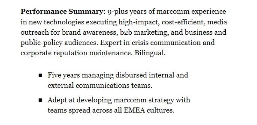 Drept urmare, în loc să treci nişte obiective de care nu îi pasă nimănui, mai bine faci un rezumat al realizărilor tale.