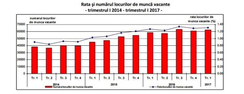 În ultimii trei ani locurile de muncă vacante au crescut cu 160% de la 38.154 în primul trimestru din 2014 la 62.220 în prezent.