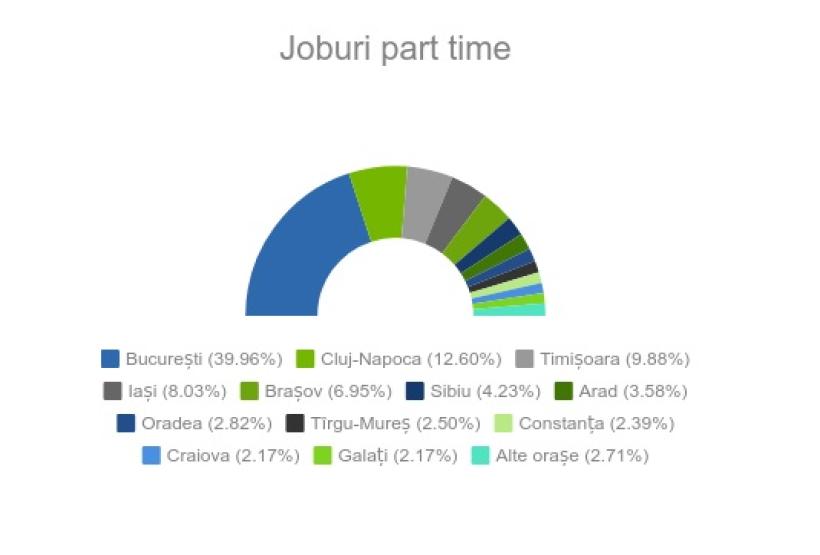 Pentru studenții care vor să își împartă timpul între cursuri și un job part-time, companiile scot la bătaie posturi de operator prelucrare date, lucrător comercial, operator interviu/sondaje de opinie, operator call center, profesor/educator, consultant vânzări, consultant relații clienți, ofițer colectare creanțe, recepționist. Toate acestea preponderent în București (368), Cluj-Napoca (116), Timișoara (91), Iași (74), Brașov (64), urmate de Sibiu (39), Arad (33), Oradea (26), Tîrgu-Mureș (23), Constanța (22), Craiova (20) și Galați (20).