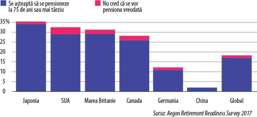 Tendinţa se observă și în alte țări. La nivel global, aproape 20% dintre persoane își doresc să se retragă din piața muncii la 75 de ani sau deloc.