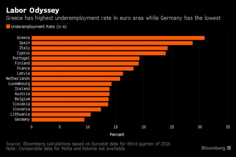 O situaţie dificilă e întâlnită şi în Spania, unde peste 25% din populaţia activă are probleme în a-şi găsi un loc de muncă, dar şi în Italia şi Cipu (puţin sub 25%).