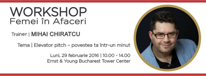 Workshop-ul va ajuta la construirea de pitch-uri pentru cazuri concrete ale paticipantelor, prezentând exemple şi explicând elementele şi paşii de parcurs pentru a avea o prezentare de impact.
