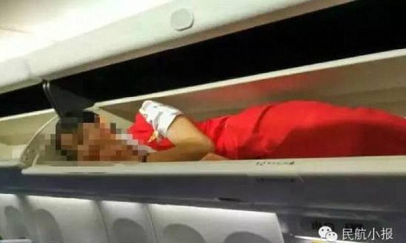 Recent, pe Internet au apărut imagini cu stewardesele companiei care erau forțate să stea în compartimentele de bagaj de mână. Potrivit presei chineze, stewardesele făceau asta pe când se aflau în pragul dintre 30 și 50 de ore de zbor.