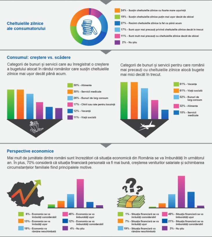 În ceea ce privește preocupările în perioada imediat următoare, costul de trai reprezintă principala grijă pentru 47% dintre respondenții din România. 18% sunt preocupați cu privire la pierderea locului de muncă, iar 9% se arată îngrijorați de presiunea cheltuielilor medicale asupra bugetului familial. Lipsa veniturilor disponibile este o preocupare pentru doar 8% dintre clienți, alături de cheltuielile cu educația.
