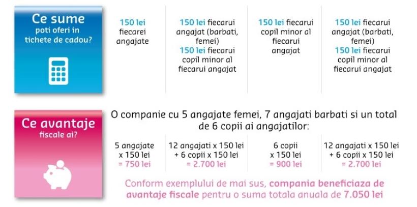 Începând cu ianuarie 2016, tichetele cadou acordate de către companii sunt scutite de impozit pe venit. Astfel, tichetele cadou în cuantum de 150 de lei/ ocazie acordate cu următoarele ocazii: 8 martie, 1 iunie, Paște și Crăciun, precum și sărbători ale altor culte religioase sunt neimpozabile și sunt scutite de contribuții sociale (C.A.S., contribuții, concedii și indemnizații, contribuția la Fondul de garantare pentru plata creanțelor salariale, fondul de sănătate, fondul de șomaj, fondul de asigurare accidente). Anterior, tichetelor cadou li se aplica impozitul pe venit de 16%.