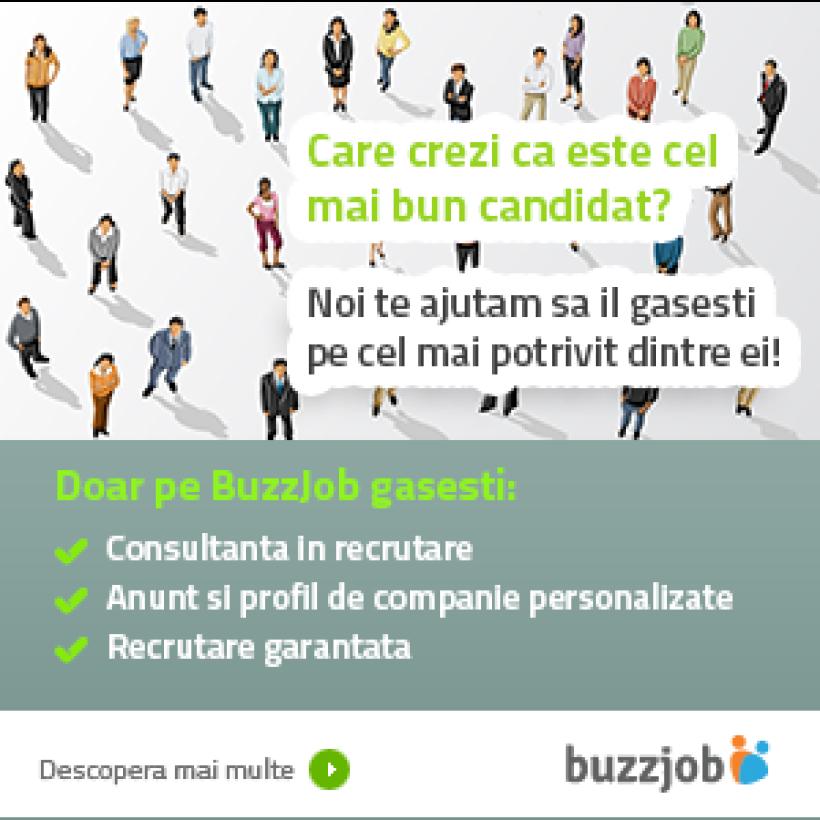Pornind de la aceasta nevoie, compania Inspire Group a lansat BuzzJob, platforma de joburi care garanteaza o intreaga echipa de recrutori profesionisti la dispozitia candidatilor si angajatorilor.