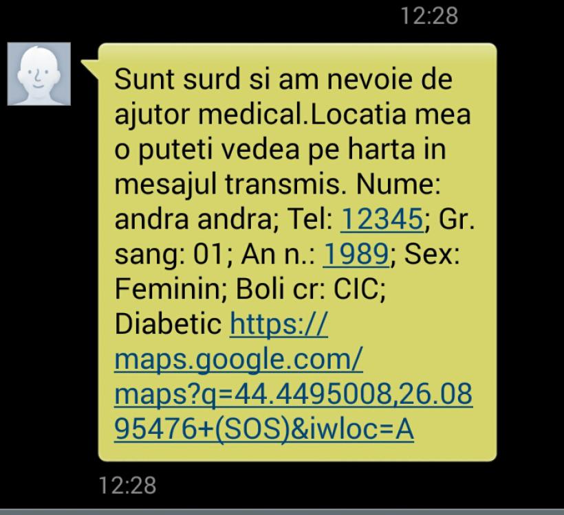 Aplicația SOS surdo-muți permite unei persoane cu deficiențe de auz și vorbire să transmită către un dispecerat informații despre o situație de urgență. Aplicația asigură transmiterea de informații legate de starea de sănătate a utilizatorului către operatorii din dispecerat prin mesaje generice predefinite și are o gamă largă de opțiuni, asigurând transmisia alertei de urgență pentru organele de ordine publică și pentru pompieri.