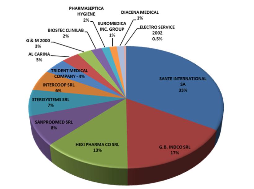 Singurele excepții sunt Hexi Pharma cu o creștere de 23% în 2013 și 5% în 2014 și Sante International cu 2% în 2013 și 9% în 2014. Pharmaseptica Hygiene o companie care are o cotă de piață de 2% potrivit studiului ICAP, a crescut numărul angajaților cu 67% în 2013 și 27% în 2014.